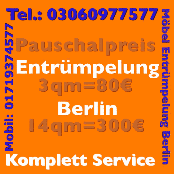 Aufgrund unserer langjährigen Erfahrung, Praxis im Bereich Haushaltsauflösung am Freitag Abholung beauftragt uns inzwischen eine Vielzahl an Kunden dies seit vielen Jahren. Denn wir bieten Wohnungsauflösung zum kleinen Preis. Neben unserem Angebot der kompletten Wohnungsauflösung kostenlos Haushaltsauflösung am Freitag Abholung Wohnungsentrümpelung Berlin sorgen wir selbstverständlich auch für den Abtransport die fachgerechte Haushaltsauflösung am Freitag Abholung sperriger Gegenstände Hausrat aller Art. Sie benötigen Platz für neue Möbel oder planen neue PC-Anlagen oder den Kauf von Elektrogeräten? Wir entsorgen zuvor schnell komfortabel Ihre alten Gebrauchsgegenstände Elektrogeräte wie ausrangierte Fernseher, defekte Computer oder Telefone, Handys Smatphones. Damit schaffen Sperrmüllabholung schnell, sauber zum pauschalen Preis Raum für Ihre Neuanschaffungen. Mit uns an der Seite wird die Möbel Haushaltsauflösung am Freitag Abholung in zum Kinderspiel. Mobiliar, Gegenstände aus Holz, Sperrmüll Altmetall, aber auch alte Sofas, Pappe, Umzugskartons, Papier Verpackungen Zeitungen entrümpeln wir in besonders kurzer Zeit und garantieren praktisch konkurrenzlose Preise.